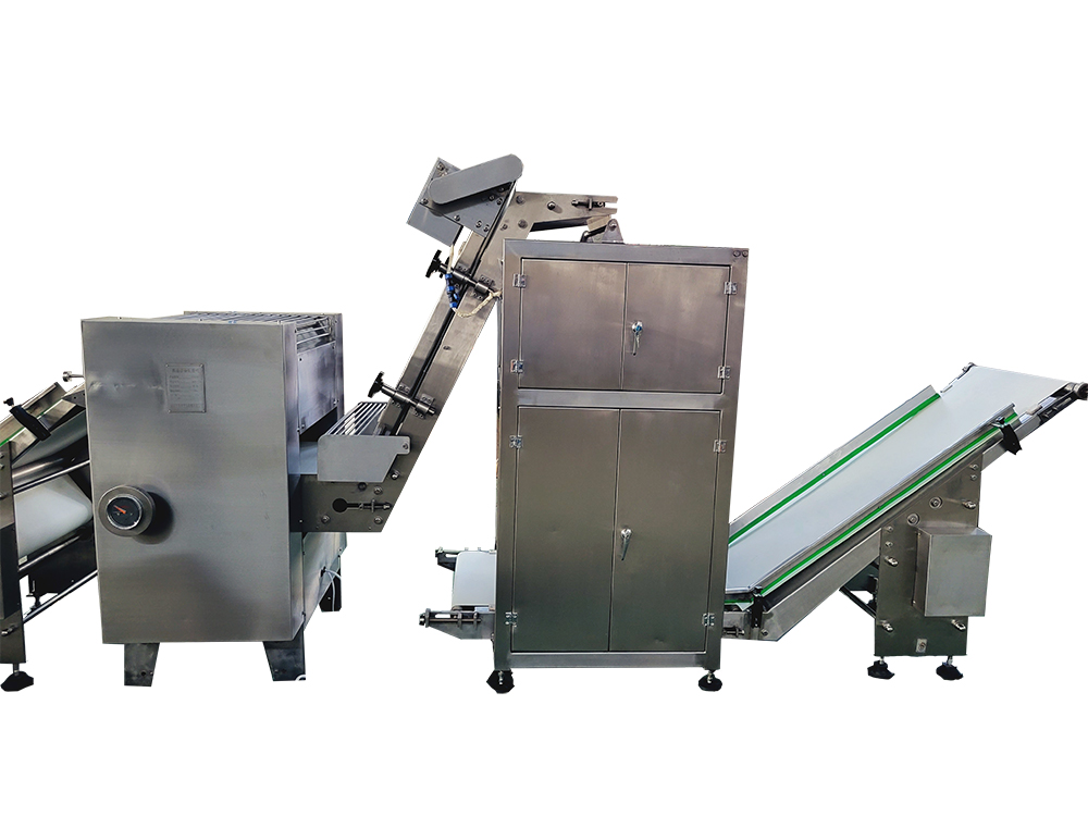 2、疊層機(jī)使面帶Z字型折疊,進(jìn)一步豐富面帶網(wǎng)狀結(jié)構(gòu),提高面筋度,設(shè)備可根據(jù)客戶場地需求選擇不同的擺放形式。