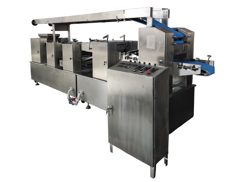 3、設(shè)備為變頻控制,每一道壓輥都采用單機(jī)驅(qū)動,通過測距傳感器,實(shí)現(xiàn)自動面帶張緊控制,多輥聯(lián)動??焖佥p松地制作大量面皮,提高生產(chǎn)效率。